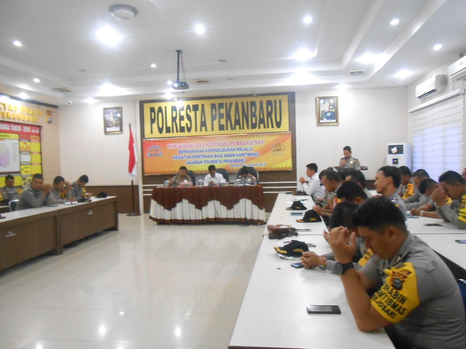 Pekanbaru, homeriau.com - Sebanyak 83 Bintara Pembina Keamanan dan Ketertiban Masyarakat (Babinkamtibmas) di lingkungan Polresta Pekanbaru, mengikuti sosialisasi dan advokasi pembangunan berwawasan kependudukan melalui kegiatan kemitraan bagi Babinkamtibmas jajaran Polresta Pekanbaru yang dilaksanakan oleh Badan Kependudukan dan Keluarga Berencana Nasional (BKKBN) Perwakilan Provinsi Riau, Selasa (20/3/2018) di Aula Polresta Pekanbaru.