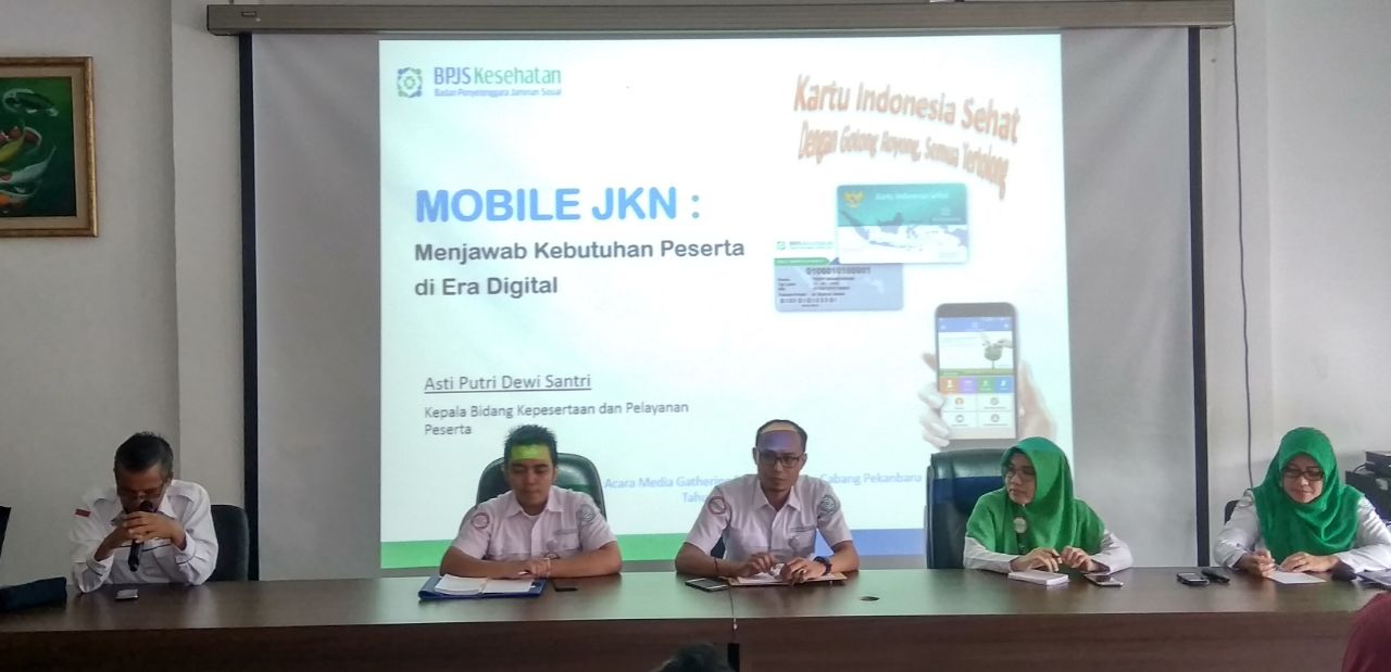 Hadir sebagai narasumber dalam kegiatan tersebut, mewakili Kacab BPJS Pekanbaru yakni Kabid Kepesertaan dan Pelayanan Peserta, Asri Putri Dewi Santri beserta jajaran serta perwakilan dari PWI Riau, Zulmiron.