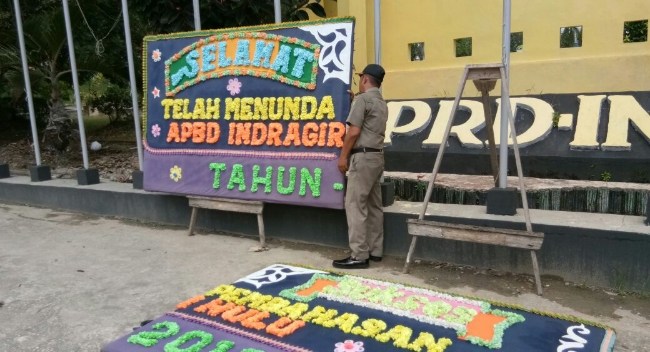Rengat, Homeriau.com – Pemandangan berbeda terlihat di halaman kantor DPRD Kabupaten Indragiri Hulu (Inhu). Sebuah karangan berukuran 1,5×4 meter bertuliskan “Selamat Sukses Telah Menunda Pembahasan APBD Indragiri Hulu Tahun 2018” menjadi perhatian masyarakat dan aparatur sipil negara (ASN) di lingkungan Pemkab Inhu.