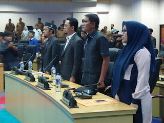Terlihat Beberapa Anggota DPRD Kampar saat menyanyikan Lagu Indonesia Raya Pada Sidang Paripurna tentang Penyampain 7 (tujuh) Ranperda Kabupaten Kampar Tahun Anggaran 2018