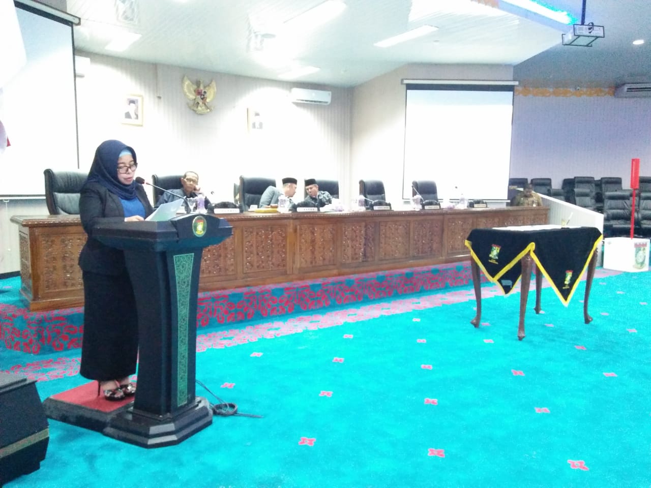 Triska Felly dari Partai PDIP Juru Bicara Banggar Saat Membacakan Keputusan Banggar pada sidang paripurna DPRD Kampar