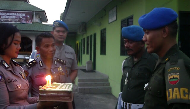 Petugas Denpom I/3 Pekanbaru pun tersenyum dan mengucapkan rasa terima kasih atas ucapan dan pemberian surprise dari Polresta Pekanbaru.
