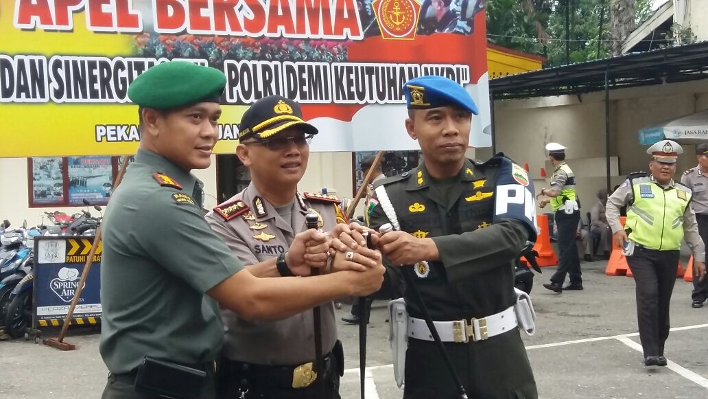 Dalam kegiatan Apel Bersama tersebut turut hadir Kapolresta Pekanbaru Kombes Pol Susanto SIK SH MH, Wakapolresta Pekanbaru AKBP Edy Sumardi Priadinata SIK, Pejabat Utama Polresta Pekanbaru, Kapolsek, Kasdim 0301/Pekanbaru Mayor Inf Muhammad Dikdoyo Berbudi S Sos, Dandenpom I/3 Pekanbaru, Pejabat utama Kodim 0301/Pekanbaru, Danramil.Hr