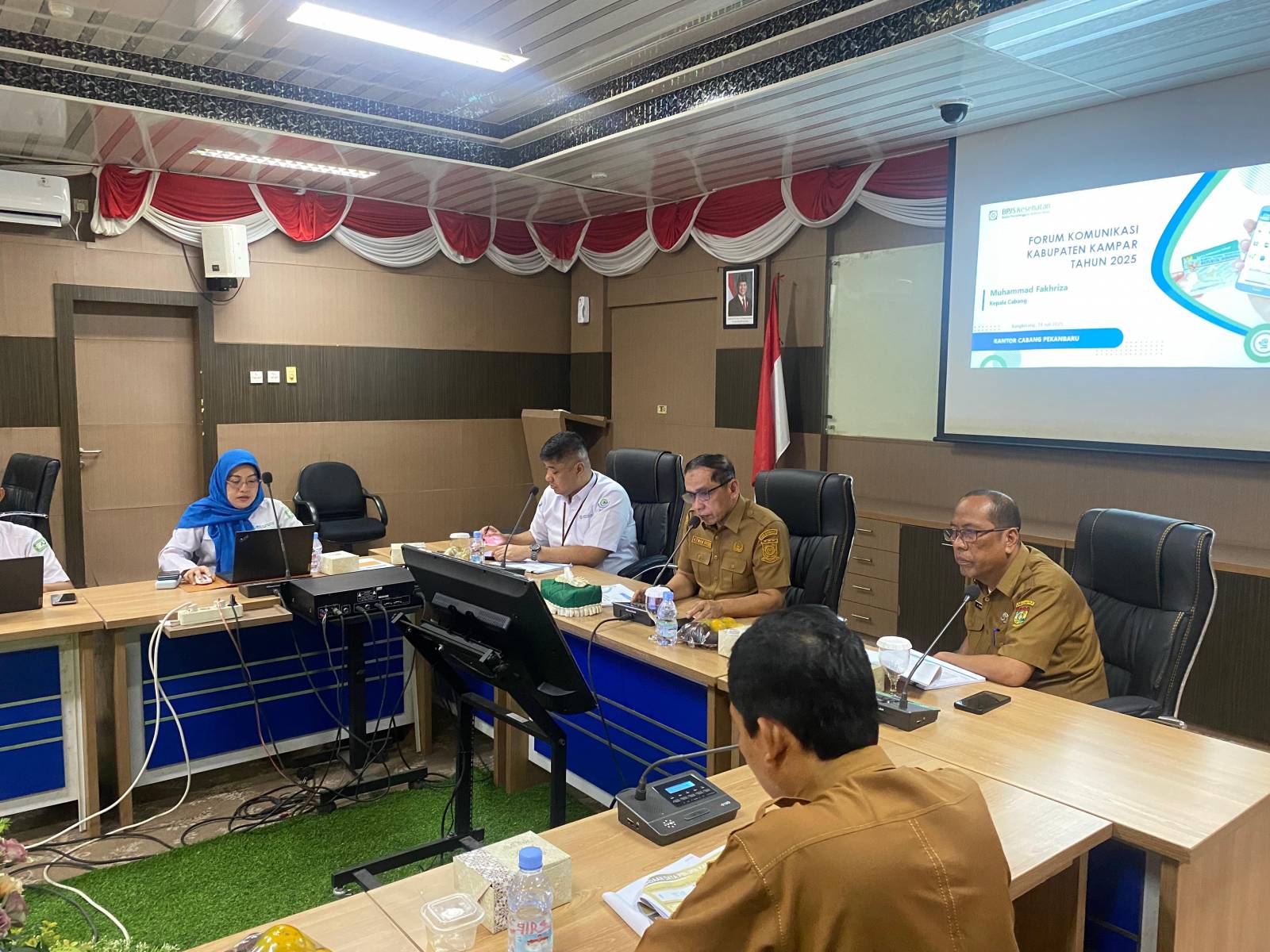 BANGKINANG KOTA - Untuk tahun 2025, Badan Penyelenggara Jaminan Sosial (BPJS) Kesehatan Cabang Pekanbaru mengusulkan sebanyak 10 Desa di Kabupaten Kampar dalam Pelaksanaan Program Petakan Sisir dan Advokasi Registrasi (PESIAR). Program ini merupakan upaya untuk meningkatkan kepesertaan Jaminan Kesehatan Nasional (JKN) di tingkat desa. Program ini bertujuan untuk menjangkau penduduk yang belum terdaftar sebagai peserta JKN, khususnya di daerah terpencil dan sulit dijangkau.