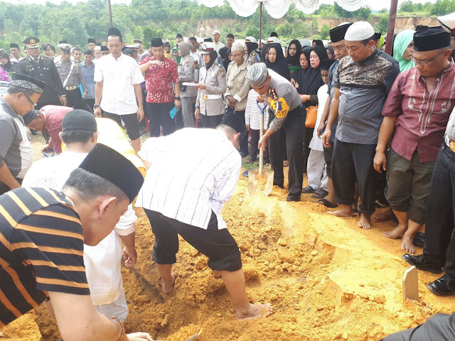 Tampak dalam prosesi almarhum mau dikebumikan, Wakapolresta Pekanbaru AKBP Edy Sumardi P. SIK ikut Menyolatkan dan memikul jenazah dari dalam mesjid hingga kemobil ambulance yg usai di sholatkan dan sampai dilokasi TPU, Wakapolresta ini pun ikut membantu menggali kubur almarhum.