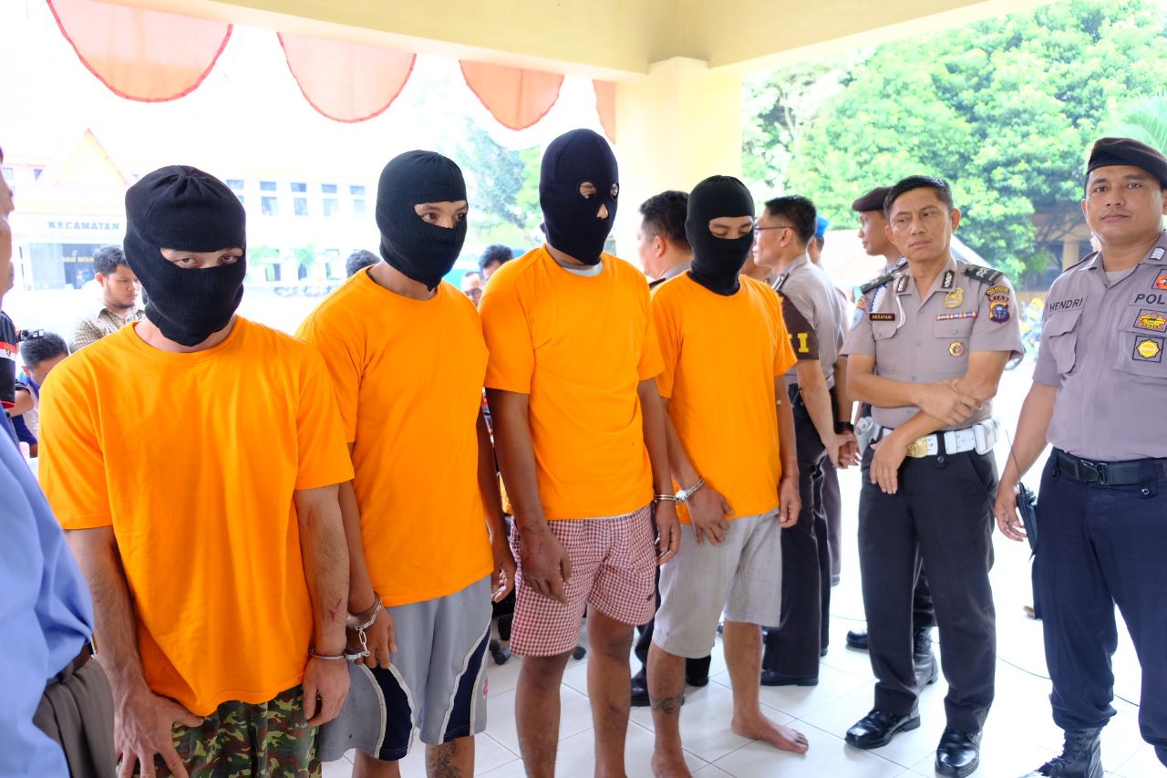 Para pelaku dikenakan pasal 363 KUHPidana, dengan ancaman kurungan paling lama 9 tahun. Para pelaku berikut barang bukti diamankan di Polsek Tampan guna pemeriksaan dan penyidikan lebih lanjut.Hr/ari
