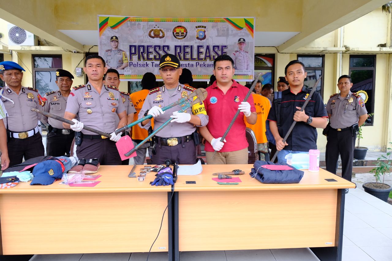 Turut hadir Kapolsek Tampan Kompol Kari Amsah Ritonga, S.H., S.I.K., Wakapolsek Tampan AKP Rudi Nababan, Kanit Reskrim Polsek Tampan Iptu Eru Alsepa, S.I.K., M.H., dan Panit Buser Ipda Wisnugraha.