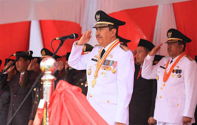 ket Foto : Syamsuar dan Wakil Bupati Siak Alfedri memimpin upacara