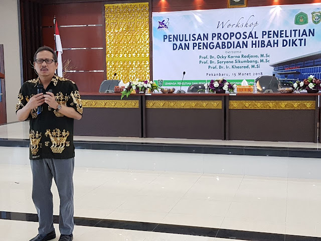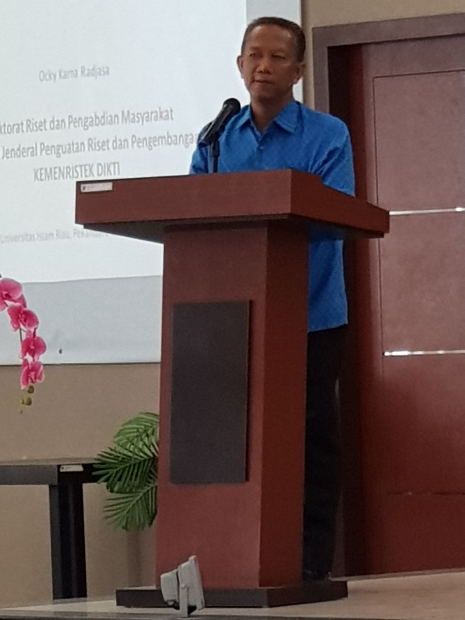 Direktur Riset dan Pengabdian Kepada Masyarakat Kemenristekdikti Prof. Dr. Ocky Karna Radjasa, M.Sc mengapresiasi tekad dan kemauan kuat Rektor UIR. Ia menjelaskan, 38 proposal dosen UIR yang lolos hibah Dikti hendaknya dapat menjadi cambuk bagi dosen-dosen lain untuk melakukan hal serupa. Workshop hari ini, tegasnya, hendaknya dapat menambah jumlah proposal yang masuk tahun depan. ''Pak Rektor mentargetkan tahun 2019 proposal yang diupload mencapai 200, dan dari target itu diharapkan 100 proposal lolos,'' tukas Ocky memberi semangat.