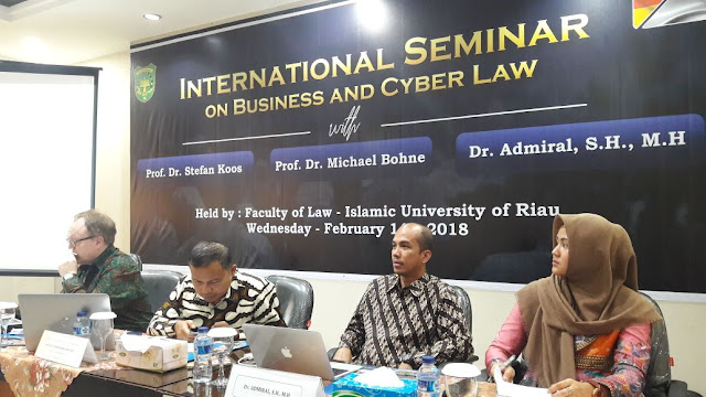 Pekanbaru, Homeriau.com - Universitas Islam Riau ( UIR ) merupakan sebuah salah satu Universitas Swasta di Riau, hari demi hari Universitas Islam Riau makin berkemajuan dari bangunan yang megah, Fakultas yang mempunyai Akreditas terbaik, serta yang lainnya. Tak lama ini Universitas Islam Riau dilirik lagi oleh Universitas terkemuka Luar Negeri, mereka mendatangkan Dua Guru Besar Bidang Hukum dari Universitas di Jerman, Eropa, menanda-tangani MoU (Memory of Understanding) dan sekaligus memberi kuliah umum dengan empat fakultas di Universitas Islam Riau (UIR) sejak Selasa pagi sampai Sabtu (14-17/2) di Kampus UIR Perhentian Marpoyan Jl. Kaharuddin Nasution Pekanbaru, Riau.