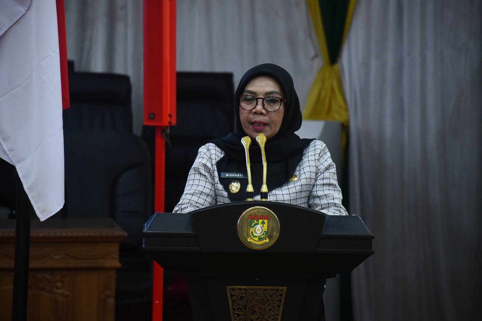 BANGKINANG KOTA - Wakil Bupati Kampar Dr. Hj. Misharti,S.Ag,M.Si hadiri langsung Rapat Paripurna dalam rangka mendengarkan Laporan Panitia Khusus (Pansus) I dan II atas Laporan Keterangan Pertangungjawaban (LKPJ) Bupati Kampar tahun 2024 yang dibuka oleh Wakil Pimpinan DPRD Sunardi DS,S.Kep, Kamis (24/4/2025).