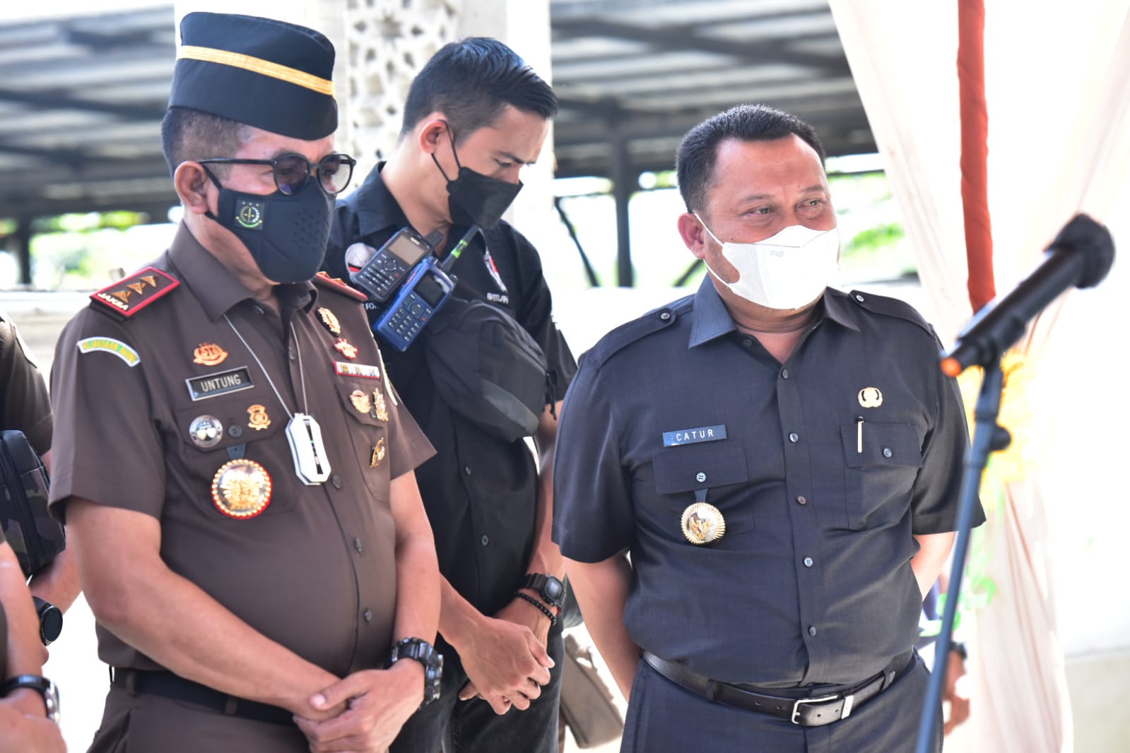 Bangkinang Kota - Kunjungan kerja Wakil Jaksa Agung Republik Indonesia Setia Untung Arimuladi, SH, M. Hum ke Kabupaten Kampar langsung disambut Bupati Kampar H Catur Sugeng Susanto, SH, MH di Kantor Kejaksaan Negeri Kampar Bangkinang Kota, selasa (26/10/21).