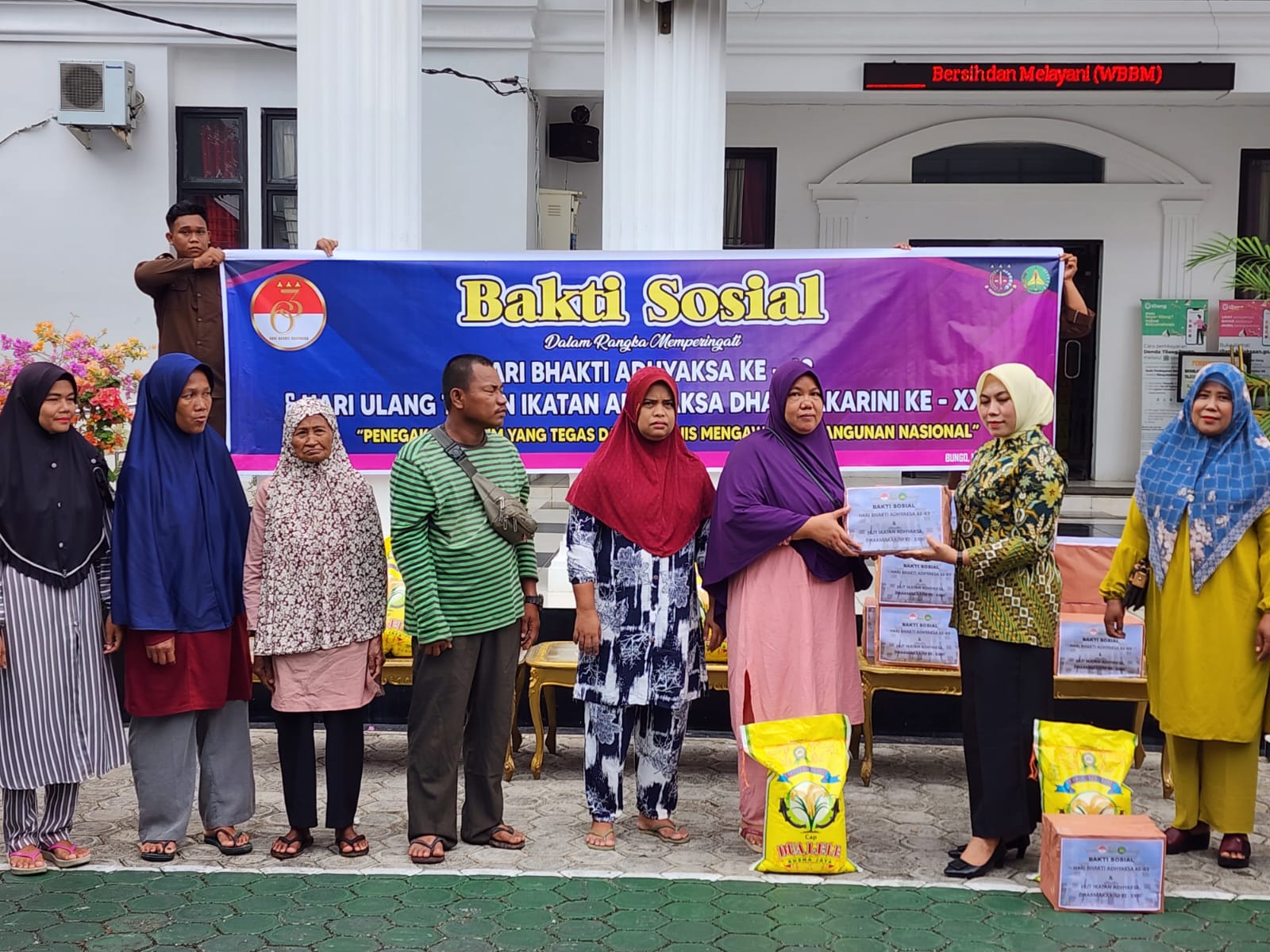 Bakti Sosial dalam rangka HBA kali ini dilaksanakan dengan memberikan bantuan sebanyak 25 bingkisan beberapa kebutuhan pokok harian kepada beberapa masyarakat di Kabupaten Bungo. Plh. Kepala Kejaksaan Negeri Bungo Aben BM Situmorang, S.H., M.H. didampingi Ketua HBA Ke-63 Tahun 2023 Kejari Bungo Silfanus R. Simanullang, S.H., M.H. secara simbolis menyerahkan beberapa bingkisan beberapa kebutuhan pokok harian yang terdiri dari beras, minyak goreng, gula dan mie kepada beberapa masyarakat di Kabupaten Bungo.