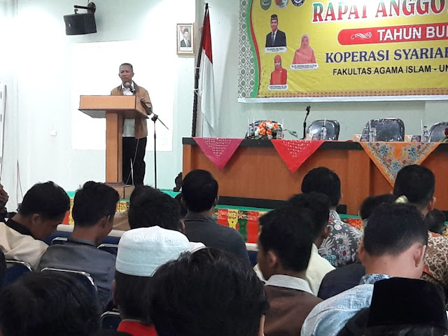 Ket Foto : Rektor UIR Prof. Syafrinaldi saat memeberi sambutan dalam Pembukaan RAT Koperasi Syariah Darussalam FAI