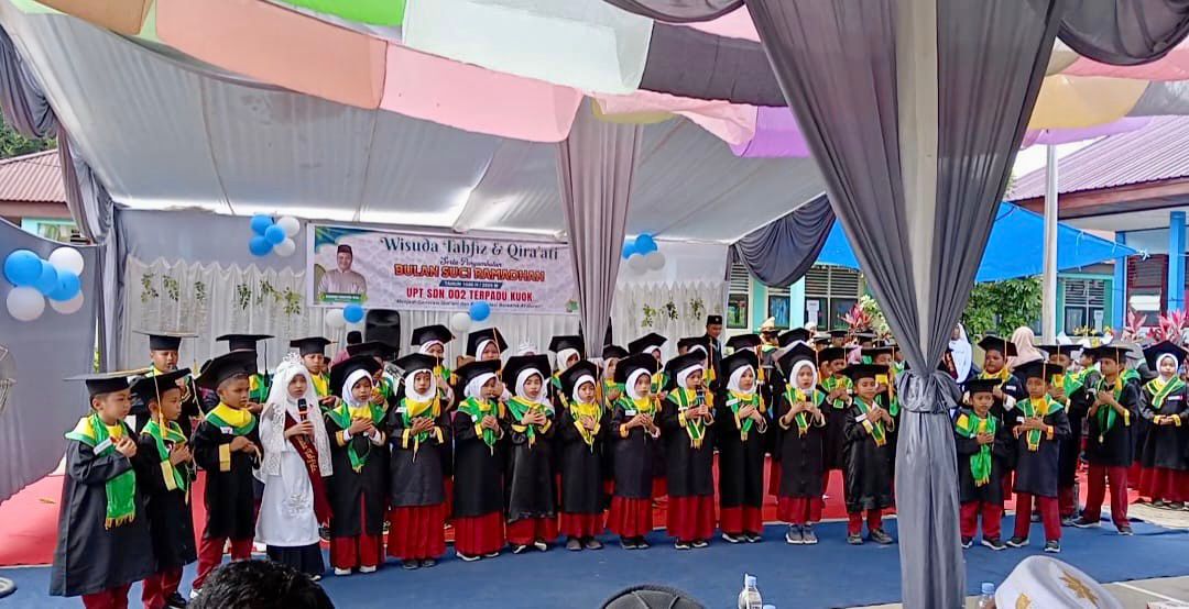 Wisuda tersebut mengusung Tema “Menjadikan Generasi Qur’aini yang Berprestasi Bersama Al-Qur’an yang dihadiri oleh Camat Kuok Hadinur, S.STP, Korwil Kuok, Kapolsek Bangkinang Barat, Kepala Sekolah SDN 002 Kuok Terpadu Nur Afrida, M.Pdi dan 85 orang siswa yang telah menyelesaikan program hafalan Al-Qur’an dan pembelajaran Qira’ati sebagai bagian dari komitmen sekolah dalam membentuk generasi Qur’ani.
