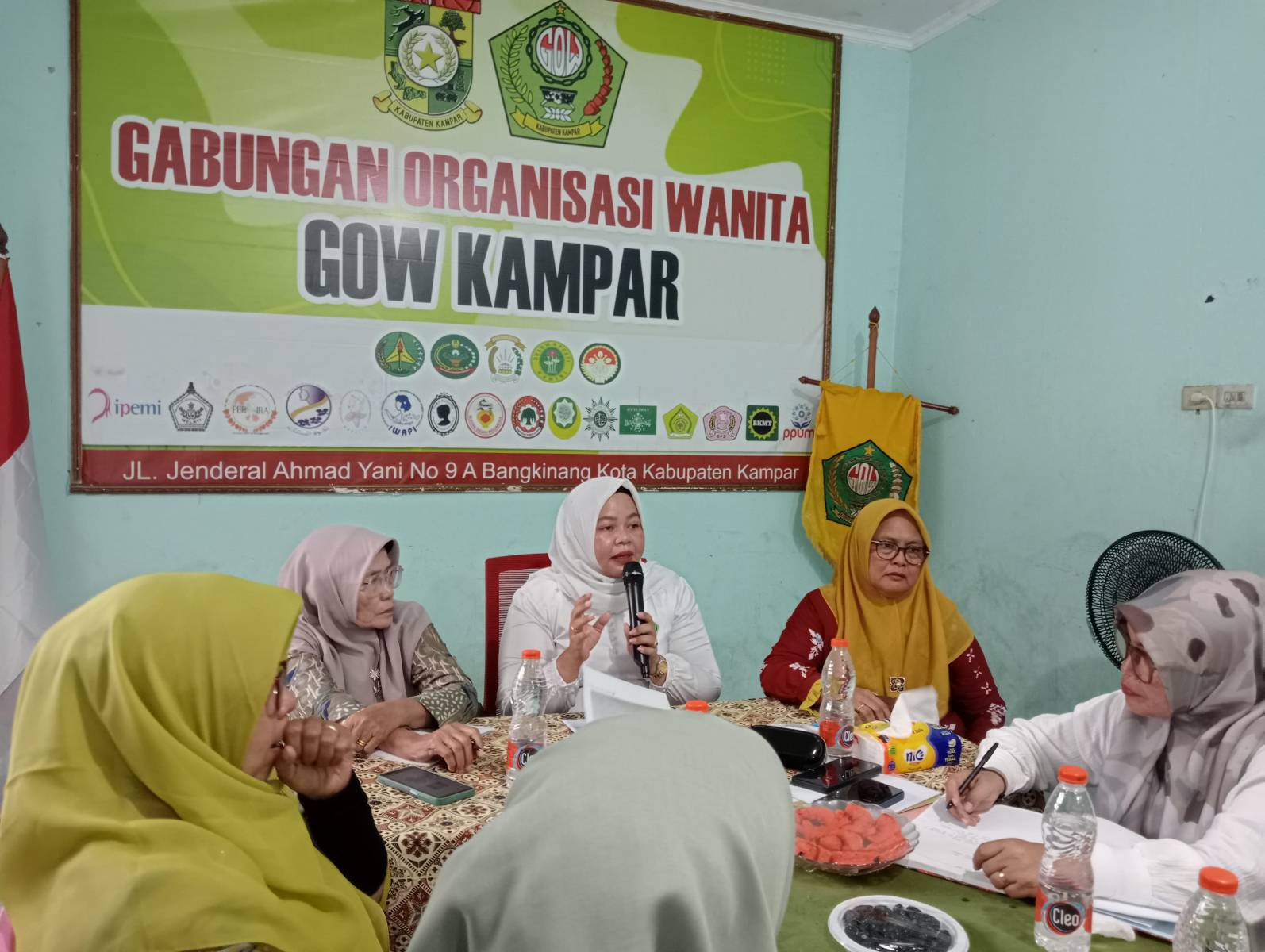 Bangkinang Kota, - Berbagai program kegiatan yang telah dirancang oleh Gabungan Organisasi Wanita (GOW) Kabupaten Kampar dalam waktu dekat ini akan segera dilaksanakan. Maka dari itu, untuk menggesa terlaksananya kegiatan tersebut dan agar dapat berjalan sesuai yang diharapkan Erni Haerani Repol, S.Pd, MM selaku Ketua Umum lakukan rapat persiapan yang tergabung pada pelaksanaan rapat bulanan. Rapat dilaksanakan di Kantor GOW Kabupaten Kampar, yang tampak dihadiri oleh Para pengurus, Rabu (7/5).