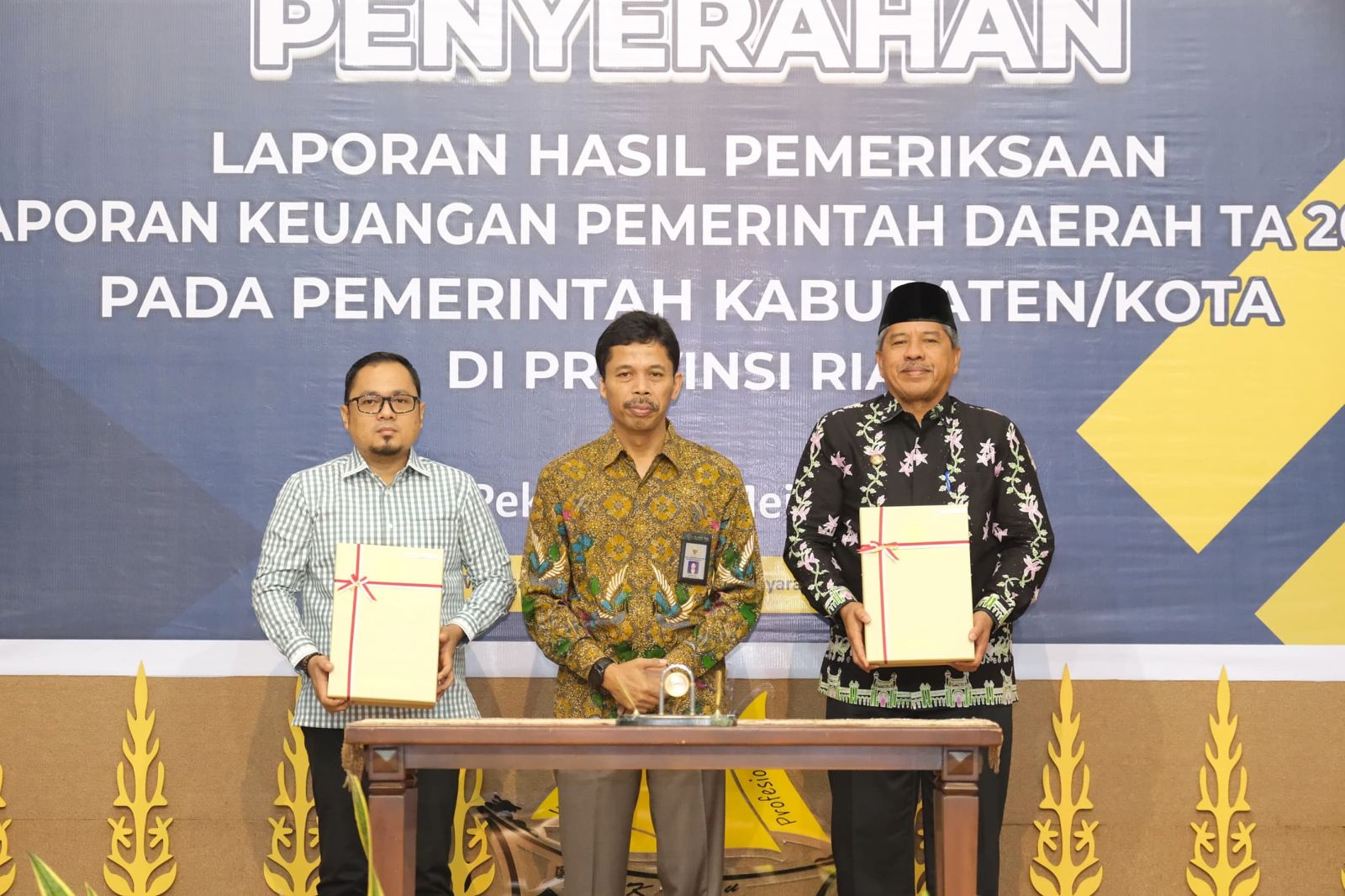 Penghargaan itu, diserahkan langsung Kepala Perwakilan BPK RI Perwakilan Provinsi Riau Jariyatna kepada bupati Siak Alfedri pada acara penyerahan Laporan Hasil Pemeriksaan (LHP) Laporan Keuangan Pemerintah Daerah (LKPD) tahun 2023.