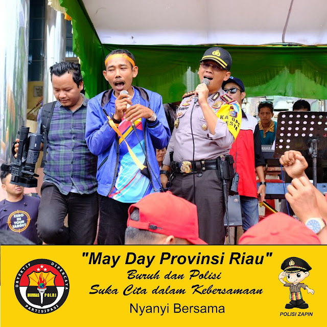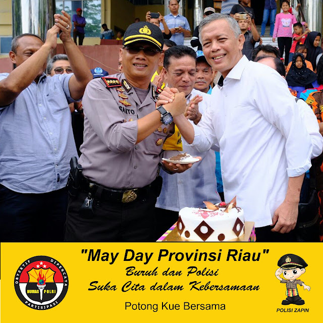 Kapolda Riau Irjen Nandang MH diwakili Kapolresta Pekanbaru Kombes Pol Susanto SIK SH MH dalam sambutannya mengucapkan selamat hari Buruh Sedunia bagi seleruh buruh yang ada dipekanbaru dan didaerah Riau yang melaksnakan perayaan .