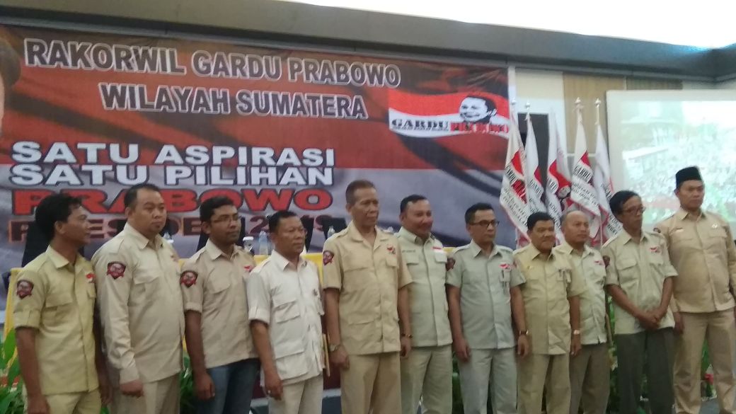 Rapat Koordinasi Wilayah (Rakorwil) Gerakan Rakyat Dukung (Gardu) Prabowo Regional I se Sumatera di Ballroom Hotel Grand Suka, Jalan Soekarno Hatta Pekanbaru, Ahad (6/5/2018), berlangsung semarak dan meriah. "Dalam Rakorwil I Regional Garda Prabowo se Sumatera ini, kami optimis jika Pak Prabowo akan maju dan menang di tahun 2019. Untuk itu, seluruh kader garda Prabowo se Sumatera siap memenangkan Pak Prabowo menjadi Presiden," kata Ketua DPD Garda Prabowo Riau, Irwansyah disambut tepuk tangan ratusan kader dan tamu undangan yang hadir.