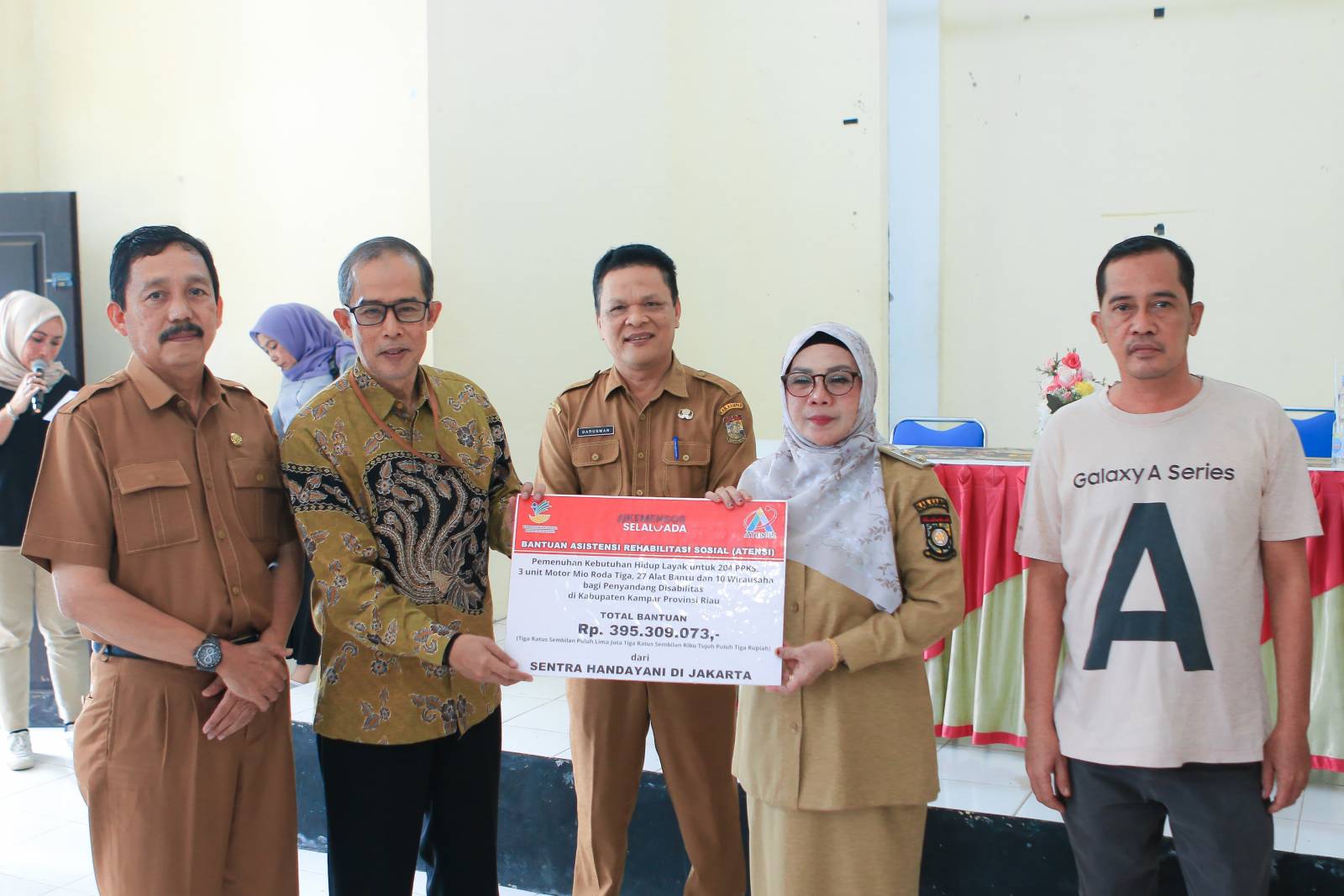 Sementara itu, Ketua pokja disabilitas Centra Handayani UPT Kemensos RI, Muhammad Abduh, dalam keterangannya menjelaskan bahwa bantuan untuk Kabupaten Kampar secara keseluruhan berjumlah Rp. 395.309.037 untuk 201 orang penerima bantuan dengan bentuk bantuan seperti motor roda 3, kursi roda, kruk, alat bantu dengar, wira usaha dan sembako. Adv