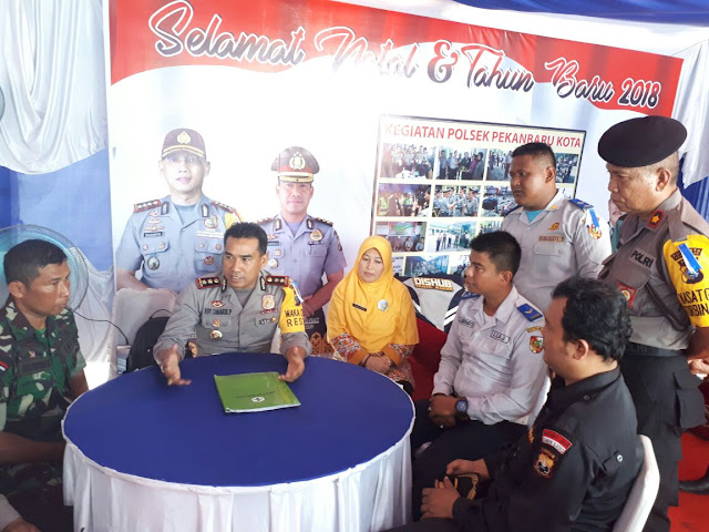 Pekanbaru, Homeriau.com - Menjelang Natal, Tahun Baru 2018 dab libur akhir pekan, Kapolresta Pekanbaru Kombes Pol Susanto SIK SH MH diwakili Wakapolresta mengecek pos yang berada di wilayah hukum Resta Pekanbaru, Sabtu (23/12/2017) Pukul 11.30 WIB